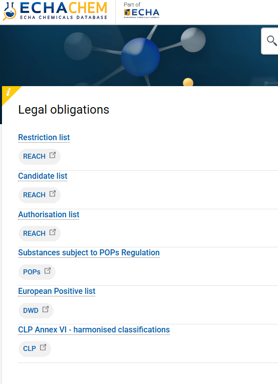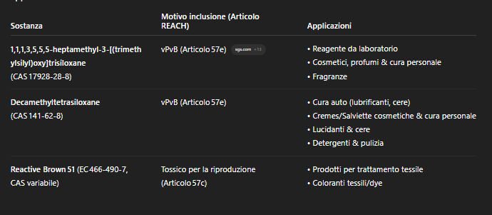 Ai sensi del regolamento REACH, le aziende hanno obblighi giuridici quando la loro sostanza è inclusa nell’elenco delle sostanze candidate, in quanto tale o in quanto componente di miscele o articoli.