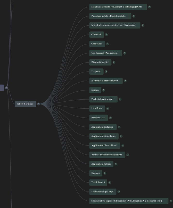 È importante notare che la classificazione dei PFAS all’interno del Documento di Sfondo presenta una leggera differenza per i polimeri fluorurati a catena laterale (SCFP): sebbene chimicamente appartengano al gruppo dei PFAS polimerici, ai fini della valutazione dell’impatto sono raggruppati tra i precursori di PFAA, a causa del loro profilo di degradazione. Alcune sostanze che si sono dimostrate degradabili e che non possono formare “frecce” di PFAS persistenti (come trifluorometanolo, trifluorometilammina e difluorometandiolo) sono state escluse dall’ambito di applicazione della restrizione.