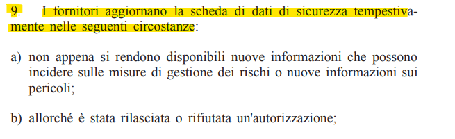 Ma cosa dice il punto 9 dell’articolo 31 del Regolamento 1907/2006 REACH?