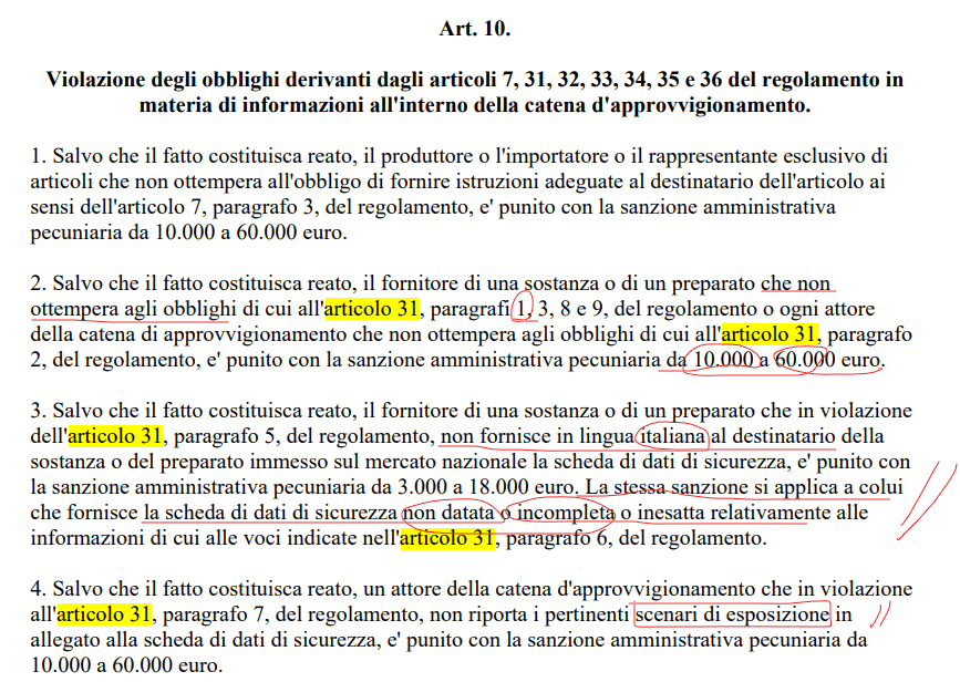 Ricordo che le violazioni alle restrizioni REACH hanno sanzioni che partono da 40.000 a 150000.€ con rilevanza penale (arresto fino a 3 mesi).